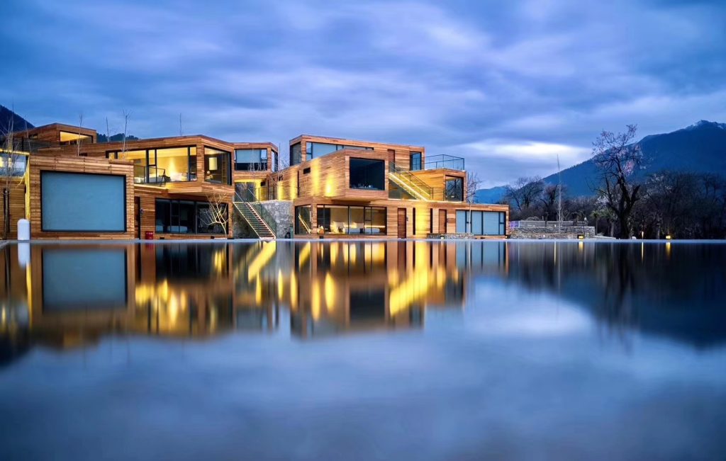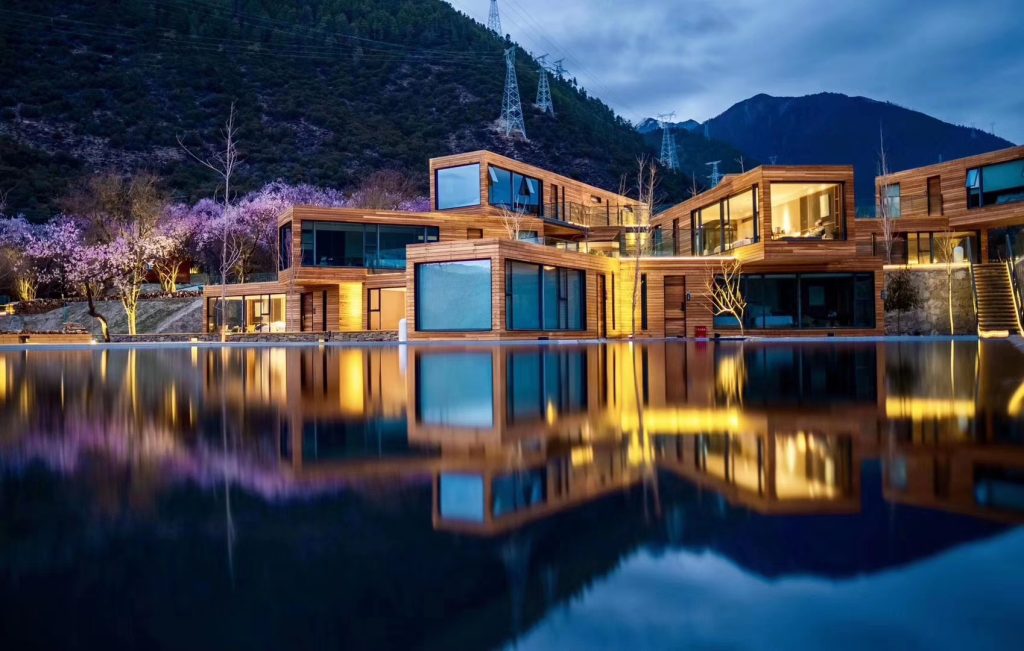 首页/News/西藏林芝山泽居度假酒店 西藏林芝山泽居度假酒店jikuadmin2021年4月12日News 项目简介 西藏林芝的山泽居度假酒店坐落在雅鲁藏布江畔,将雪域高原的壮丽景色与现代设计的舒适体验巧妙融合,是很多人开启或结束西藏之旅的心仪之选。 设计灵感 借鉴藏族”玛尼堆”堆叠手法,呼应周边山体形态,做到建筑与地域文化的结合。 建筑布局 由41个集装箱模块通过堆叠、错落、搭接等手法,顺应地形高差。 景观融合 设置无边界景观水池,倒映雪山和建筑;大部分客房拥有270°全景落地窗,引入雪山、江河、桃林等不同景观。 环保理念 采用集装箱模块化建筑方式,建筑废料少且回收率高,属于临时性轻介入。建设中最大限度保留场地内的古桃树和原有石块。